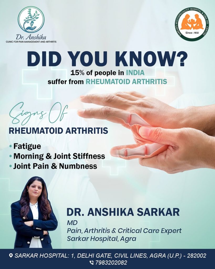 If you are experiencing symptoms of arthritis, visit Sarkar Hospital, Agra today for expert consultation and personalized care.